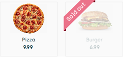 If an article on a button is sold out (which may be the case in restaurants, etc.), your organization may display it like this on the POS display: