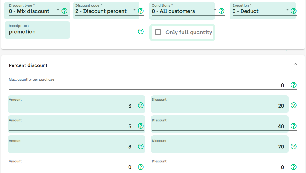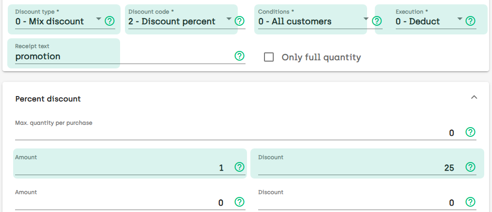 Mix discount, discount percent