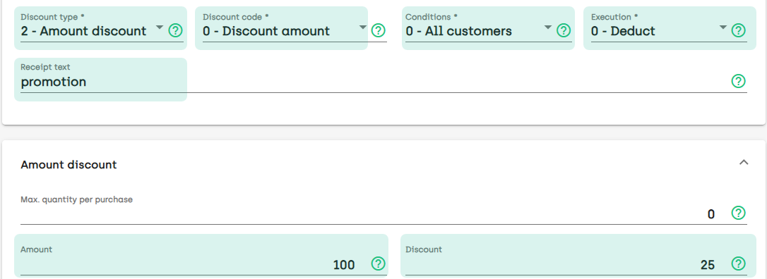 Amount discount, discount amount